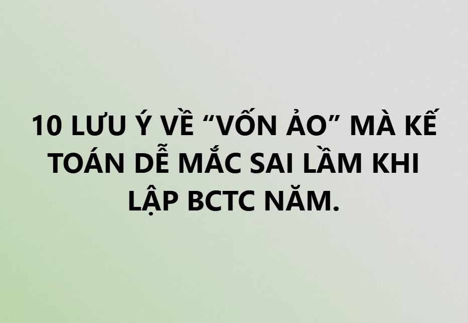 Vấn đề “vốn ảo” luôn là chủ đề nhạy cảm, đặc biệt trở nên nóng bỏng vào thời điểm lập Báo cáo tài chính (BCTC) năm. Đây là giai đoạn mà các bạn kế toán, nhất là kế toán dịch vụ, thường xuyên gặp khó khăn khi nhận và xử lý số liệu gấp gáp. Dưới đây là những điểm lưu ý quan trọng mà bất kỳ ai cũng cần cân nhắc trước khi “chạy nước rút” để hoàn thiện BCTC.