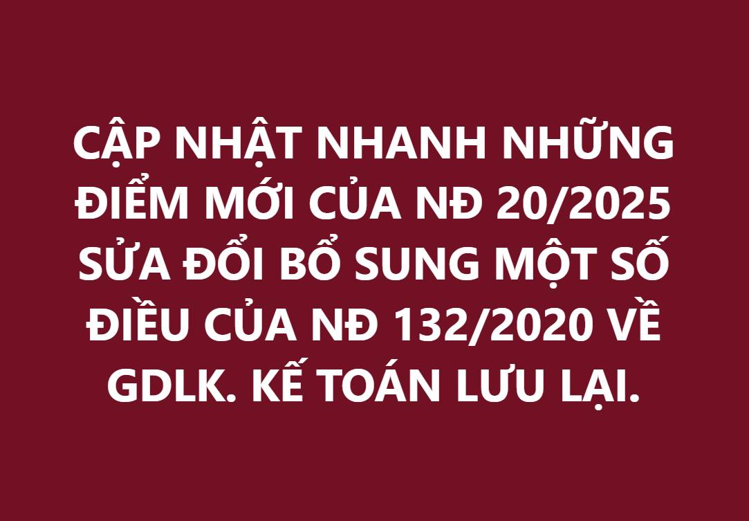 CẬP NHẬT NHANH NHỮNG ĐIỂM MỚI CỦA NĐ 20/2025 SỬA ĐỔI BỔ SUNG MỘT SỐ ĐIỀU CỦA NĐ 132/2020 VỀ GDLK. KẾ TOÁN LƯU LẠI.