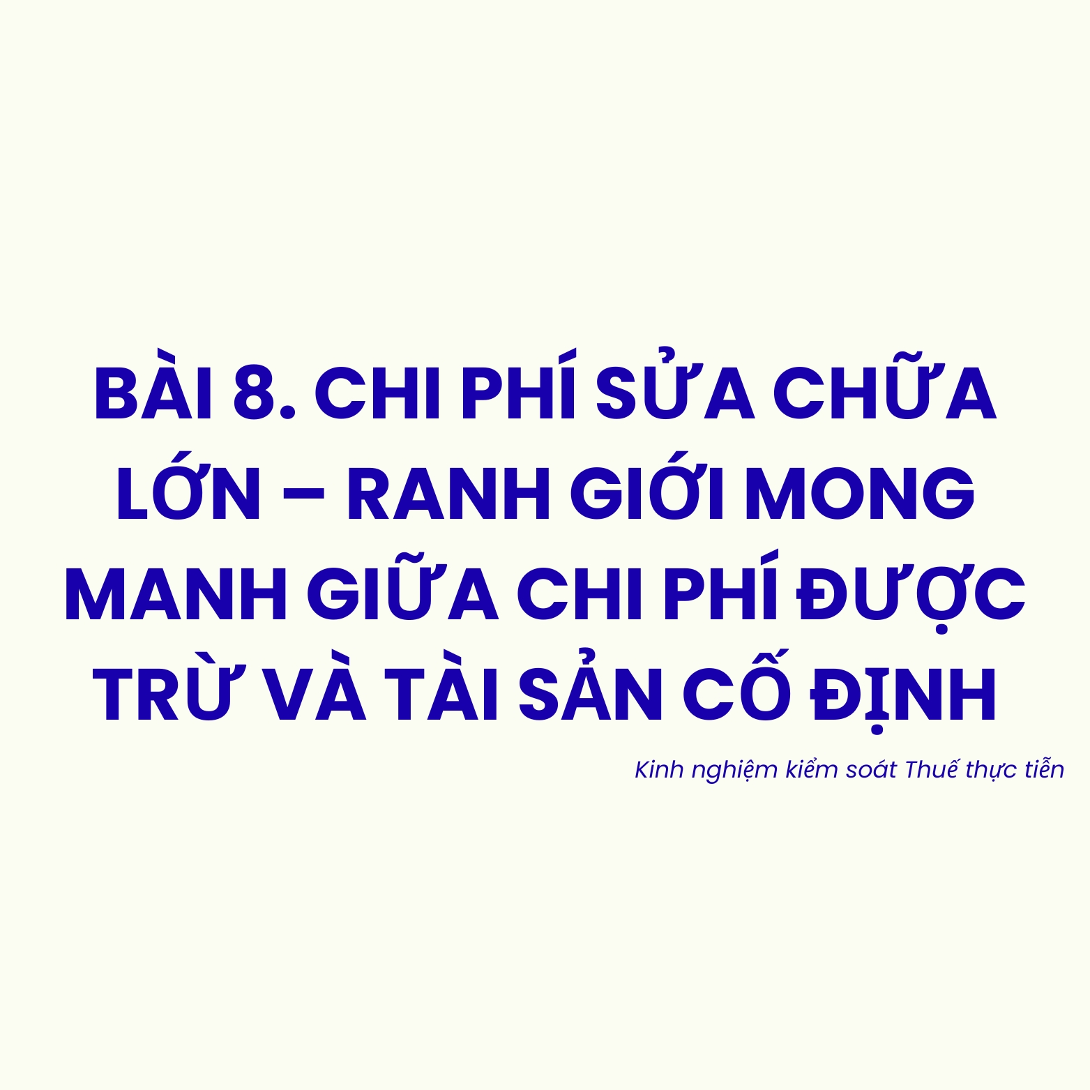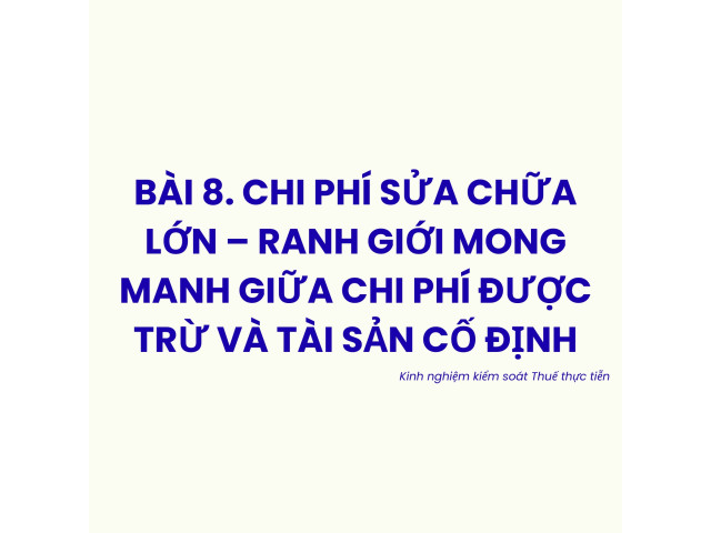 Trong nghề kiểm soát thuế, có những khoản chi mà chỉ cần “lệch đi nửa bước” là doanh nghiệp có thể mất hàng tỷ đồng chi phí được trừ. Chi phí sửa chữa lớn là một trong số đó. Tôi thường gọi đây là “ranh giới mong manh nhất” giữa chi phí hợp lệ và tài sản cố định, bởi nó nằm giữa hai thế giới: vừa là chi phí của kỳ, vừa là giá trị hình thành của tài sản. Cách doanh nghiệp phân loại và hạch toán sẽ quyết định toàn bộ kết quả thuế của năm đó.