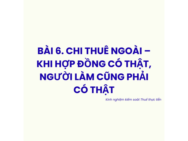 Tôi luôn nói với các doanh nghiệp rằng: trong hồ sơ kế toán, “dịch vụ thuê ngoài” là vùng rủi ro tinh vi nhất. Bởi vì hợp đồng có thể in, hóa đơn có thể xuất, hồ sơ có thể hoàn thiện – nhưng con người thật, công việc thật và kết quả thật thì không thể bịa. Và khi cơ quan thuế mở hồ sơ, họ không nhìn hóa đơn trước, mà nhìn “tính kinh tế thật” của giao dịch.