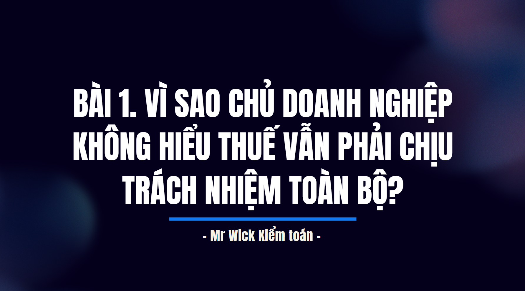 Bài viết đầu tiên này không nhằm dạy thuế. Nó tồn tại để đặt một nền móng quan trọng cho toàn bộ chuỗi bài phía sau: thuế không phải là việc của kế toán, mà là trách nhiệm trực tiếp của Chủ Doanh Nghiệp.