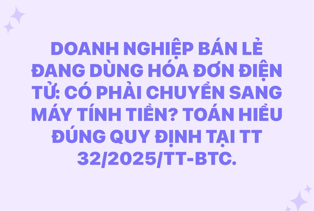 Kể từ ngày 01/6/2025, việc triển khai hóa đơn điện tử khởi tạo từ máy tính tiền (MTT) chính thức bước sang giai đoạn áp dụng bắt buộc với nhiều nhóm doanh nghiệp. Trong số đó, nhóm doanh nghiệp có hoạt động bán lẻ trực tiếp đến người tiêu dùng là nhóm chịu tác động trực tiếp và rộng khắp nhất. Tuy nhiên, một vấn đề phát sinh từ thực tế là: nhiều doanh nghiệp bán lẻ đã đăng ký và sử dụng hóa đơn điện tử, nhưng liệu có phải chuyển sang hình thức hóa đơn từ MTT không?