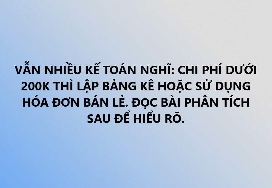 VẪN NHIỀU KẾ TOÁN NGHĨ: CHI PHÍ DƯỚI 200K THÌ LẬP BẢNG KÊ HOẶC SỬ DỤNG HÓA ĐƠN BÁN LẺ. ĐỌC BÀI PHÂN TÍCH SAU ĐỂ HIỂU RÕ.
