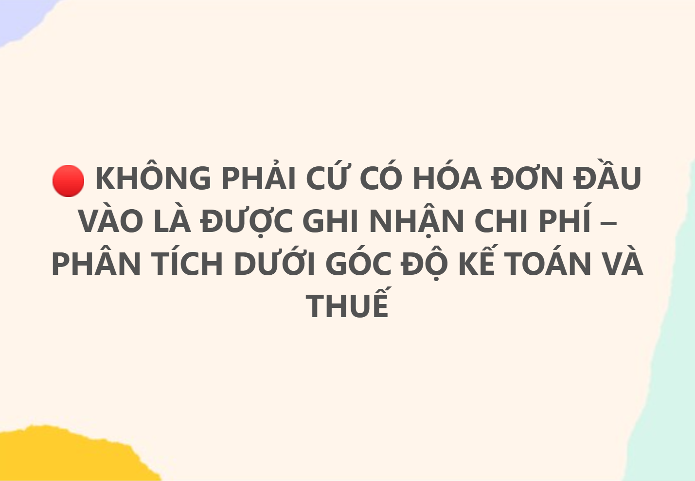 Trong quá trình đào tạo và hỗ trợ doanh nghiệp, tôi nhận thấy một sai lầm lặp đi lặp lại ở rất nhiều kế toán: cho rằng cứ có hóa đơn đầu vào là được ghi nhận chi phí hoặc tài sản. Tư duy này có thể khiến doanh nghiệp rơi vào tình trạng lệch báo cáo tài chính, bị loại chi phí, thậm chí bị truy thu thuế. Điều quan trọng hơn, là nó phản ánh một sự hiểu chưa đầy đủ về sự khác biệt giữa kế toán và thuế. Vì vậy, hãy cùng phân tích kỹ hơn – không cảm tính, không phòng thủ – mà là nhìn thẳng vào bản chất vấn đề.