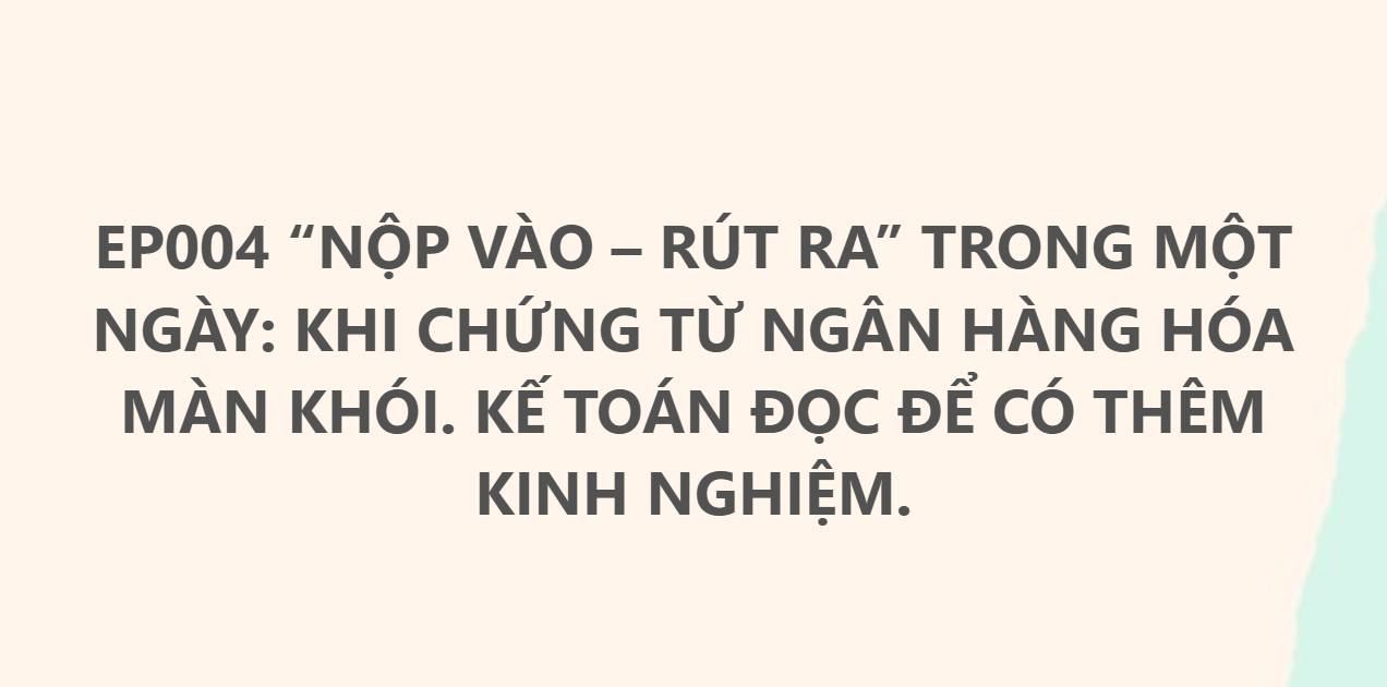 EP004 “NỘP VÀO – RÚT RA” TRONG MỘT NGÀY: KHI CHỨNG TỪ NGÂN HÀNG HÓA MÀN KHÓI. KẾ TOÁN ĐỌC ĐỂ CÓ THÊM KINH NGHIỆM.