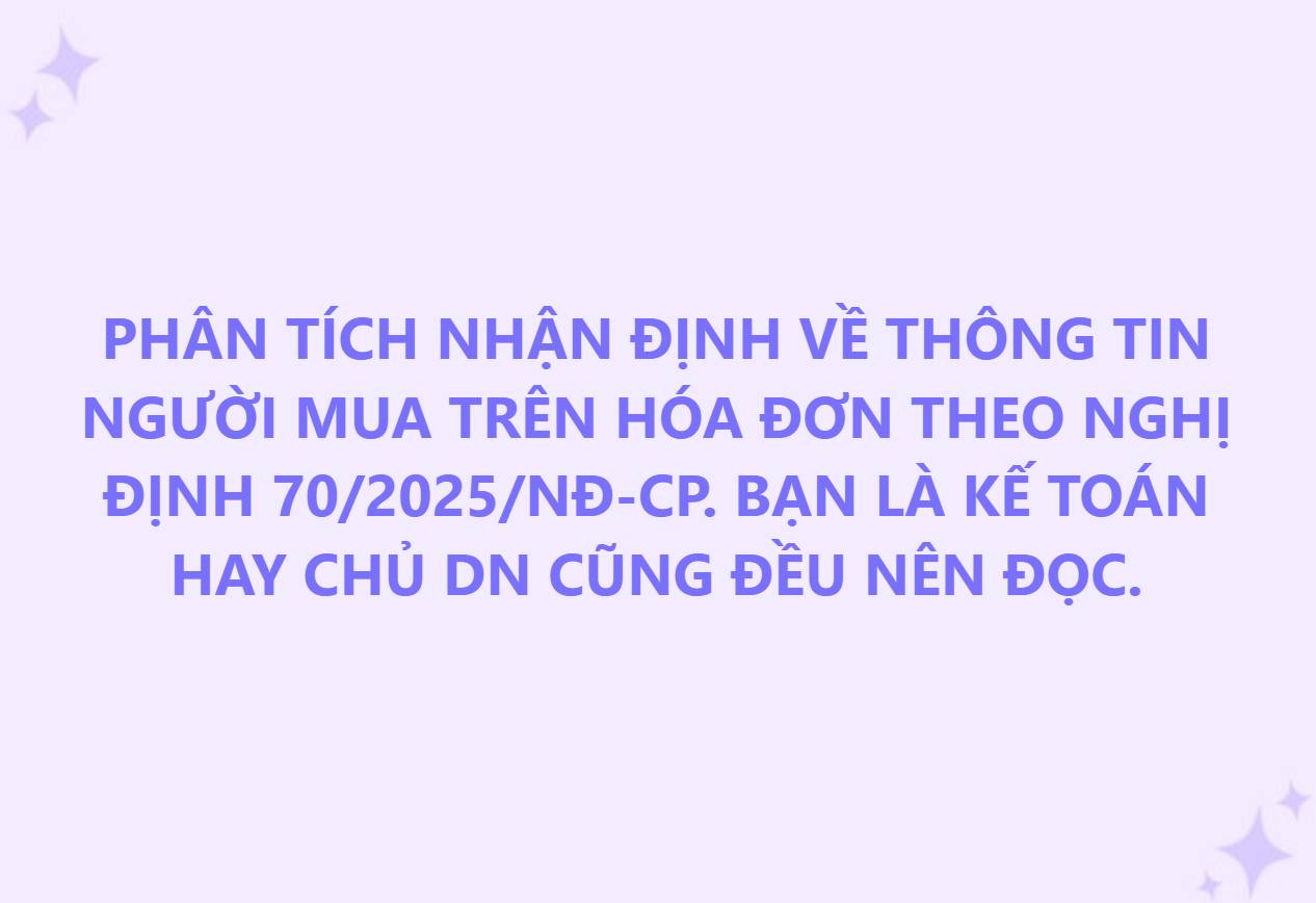 PHÂN TÍCH NHẬN ĐỊNH VỀ THÔNG TIN NGƯỜI MUA TRÊN HÓA ĐƠN THEO NGHỊ ĐỊNH 70/2025/NĐ-CP. BẠN LÀ KẾ TOÁN HAY CHỦ DN CŨNG ĐỀU NÊN ĐỌC.