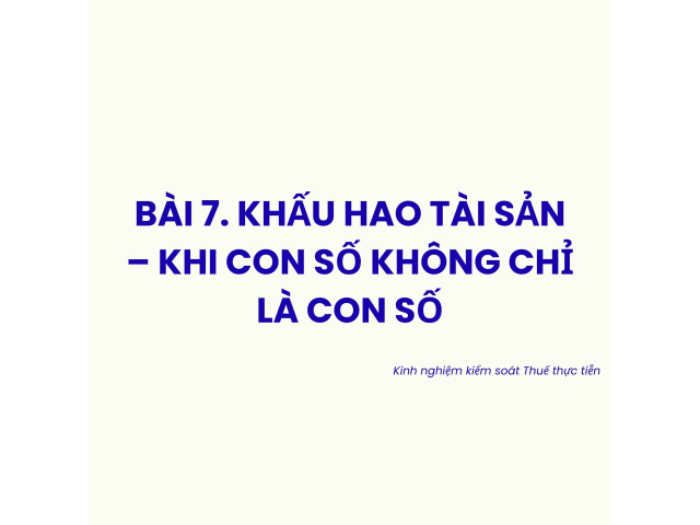 Có những con số tưởng chừng rất hiền, nhưng lại đủ sức khiến một doanh nghiệp bị loại hàng tỷ đồng chi phí. Trong nghề này, tôi gọi đó là “con số biết nói” – và khấu hao tài sản chính là một trong những con số như thế. Nhìn thì chỉ là vài dòng trong báo cáo tài chính, nhưng đằng sau nó là cả một hệ thống về quy trình, hồ sơ, thời điểm, và bản chất sử dụng tài sản.