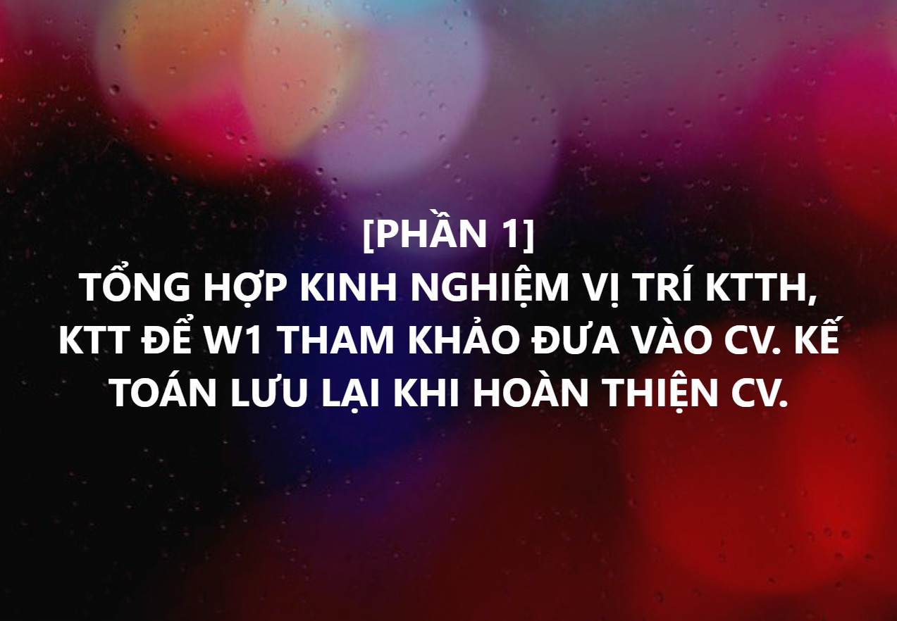 [PHẦN 1]: TỔNG HỢP KINH NGHIỆM VỊ TRÍ KTTH, KTT ĐỂ W1 THAM KHẢO ĐƯA VÀO CV. KẾ TOÁN LƯU LẠI KHI HOÀN THIỆN CV.