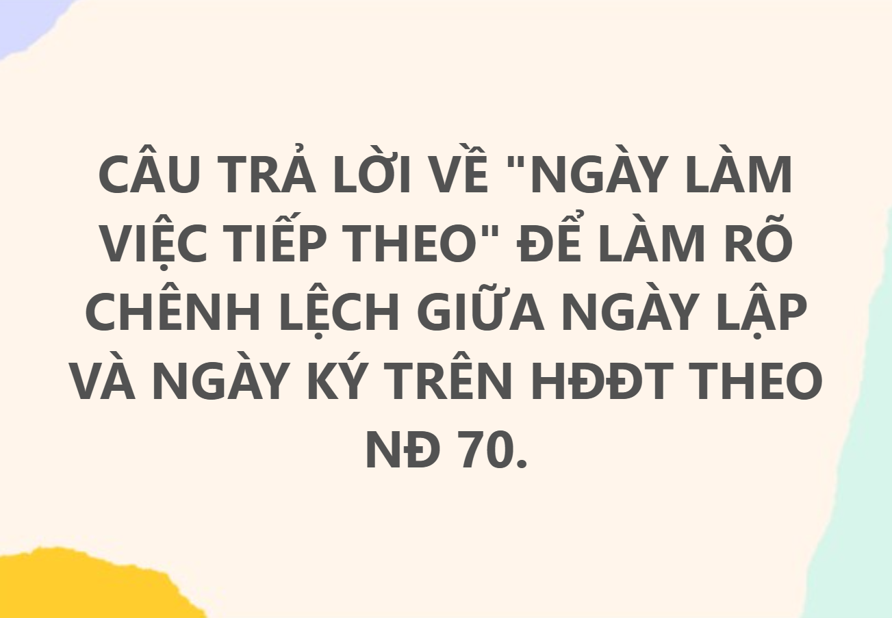 Từ đó, công ty hiểu rằng: Ngày ký số so với ngày lập hóa đơn không được quá 01 ngày làm việc. Nếu ngày lập hóa đơn rơi vào thứ Sáu, thì ngày làm việc tiếp theo sẽ là thứ Hai tuần kế tiếp, căn cứ Quyết định 188/1999/QĐ-TTg về chế độ làm việc 40 giờ/tuần, nghỉ thứ Bảy, Chủ nhật. Tuy nhiên, chưa tìm thấy văn bản pháp luật nào định nghĩa rõ “ngày làm việc tiếp theo”, nên doanh nghiệp mong được cơ quan thuế xác nhận.