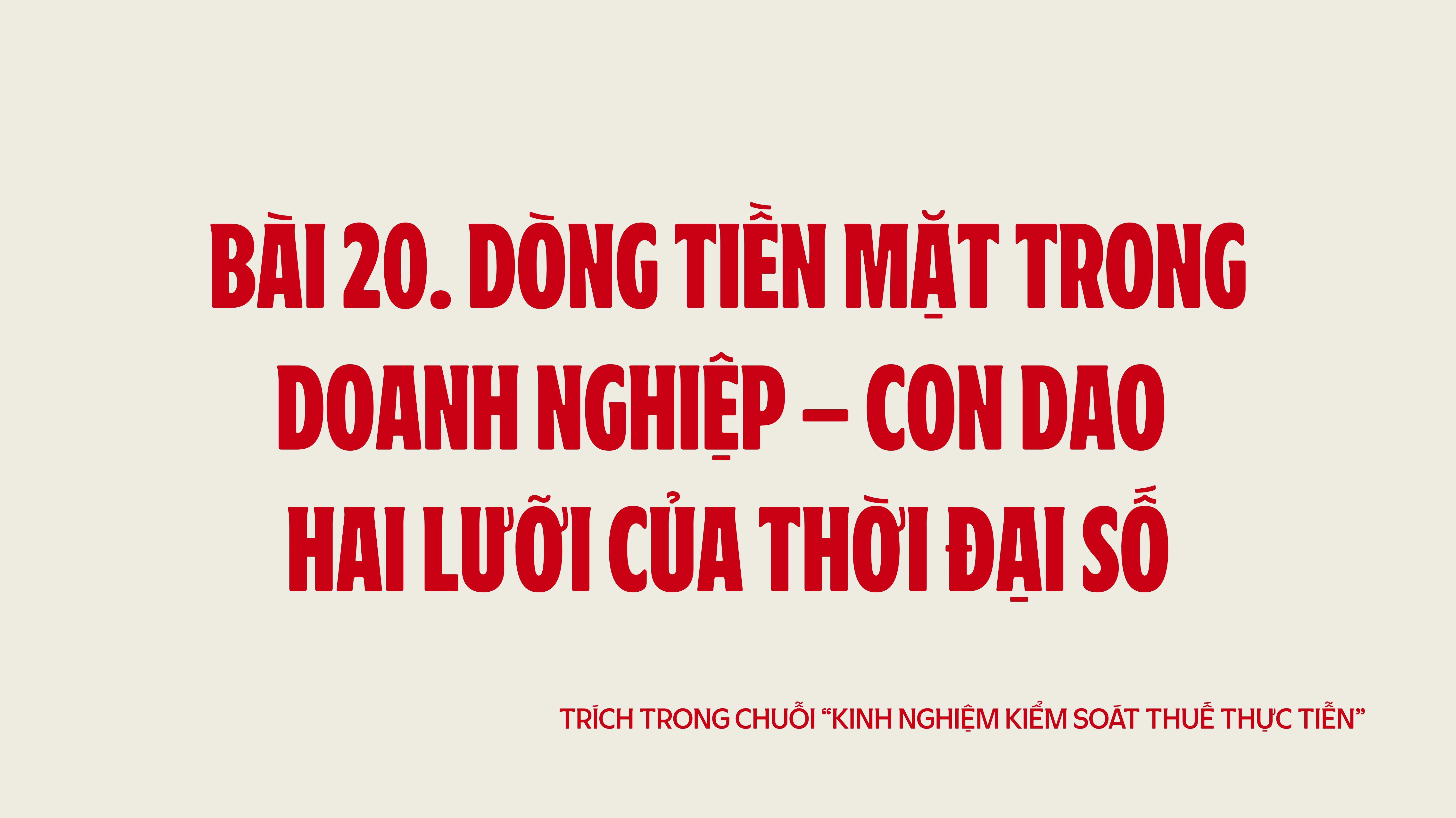 Tôi viết bài này để nhắc rằng: trong thời đại số, tiền mặt không còn là vùng an toàn. Nó là con dao hai lưỡi: dùng đúng, nó giúp doanh nghiệp linh hoạt; dùng sai, nó phơi bày tất cả những thứ doanh nghiệp muốn giấu. Và chỉ có người hiểu được bản chất của tiền mặt trong mối quan hệ với thuế mới biết cách biến nó thành công cụ chứ không phải rủi ro.