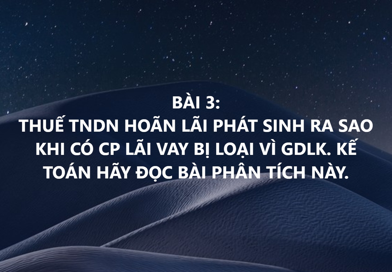 BÀI 3: THUẾ TNDN HOÃN LÃI PHÁT SINH RA SAO KHI CÓ CP LÃI VAY BỊ LOẠI VÌ GDLK. KẾ TOÁN HÃY ĐỌC BÀI PHÂN TÍCH NÀY.