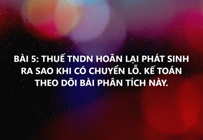 BÀI 5: THUẾ TNDN HOÃN LẠI PHÁT SINH RA SAO KHI CÓ CHUYỂN LỖ. KẾ TOÁN THEO DÕI BÀI PHÂN TÍCH NÀY.